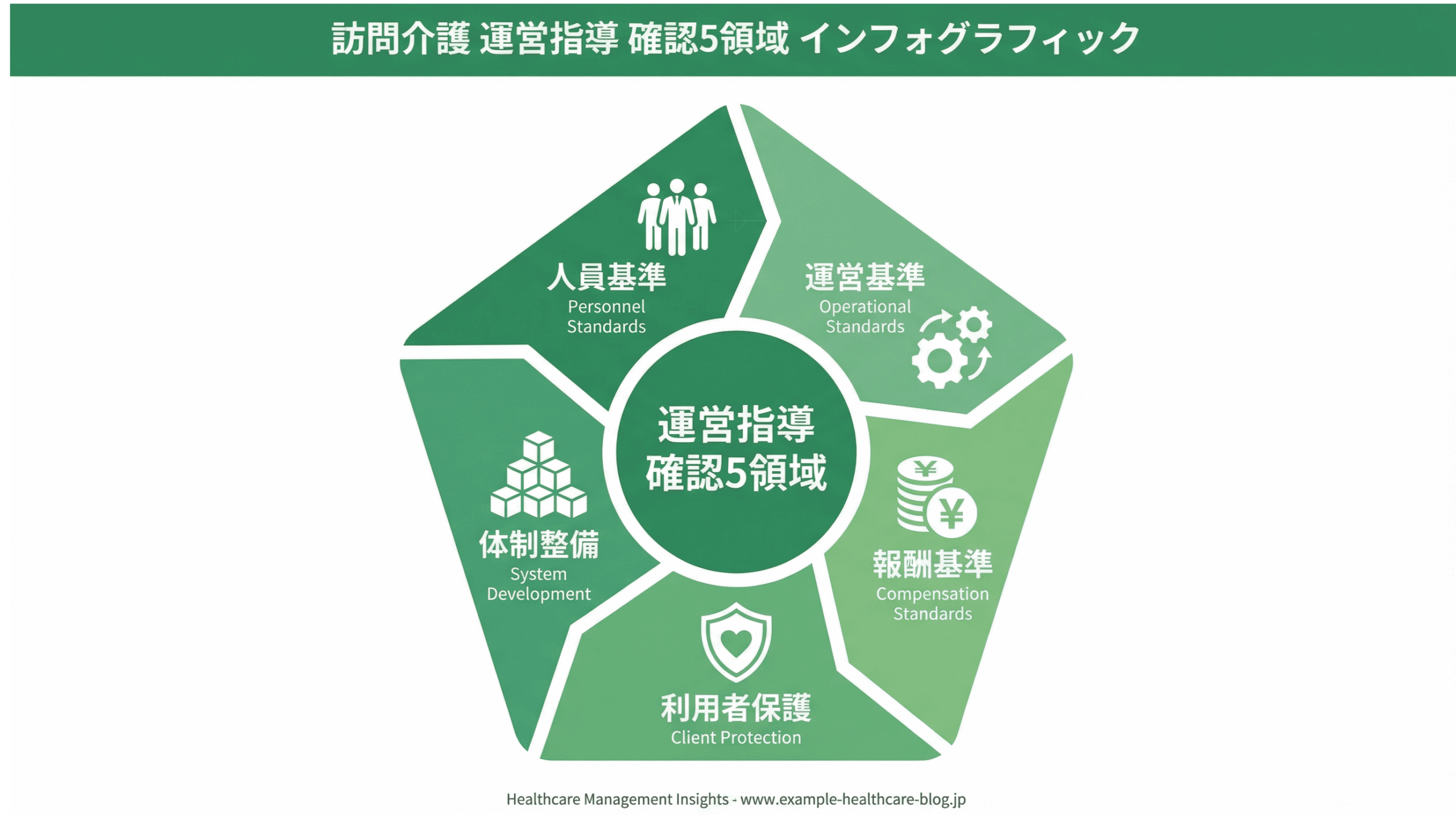 ・運営指導で確認される5大領域(人員基準・運営基準・報酬請求・加算要件・記録管理)の全体像