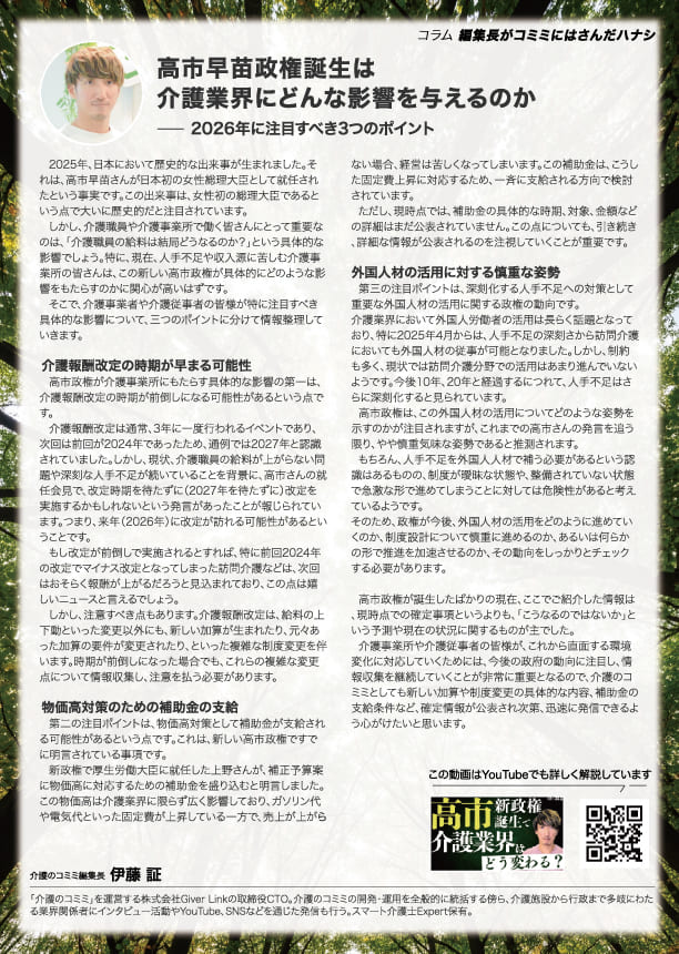 • コラム:高市早苗政権誕生によって介護業界はどう変わる?